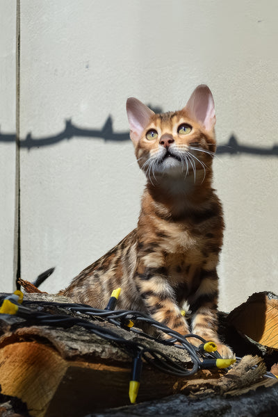 Enriching Environment: Create a stimulating environment with toys and climbing structures; Bengals thrive on mental and physical challenges.