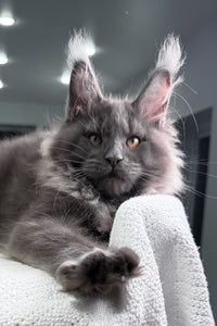 The whole journey to bring our fluffy bundle of joy home was fantastic. Maria is incredibly kind and always ready to answer all our questions. I really appreciate how seriously they take the health of the cats. Our kitten arrived with a minor case of the sniffles, likely from the airport travel, but it was easily and quickly resolved. Plus, the video call we had to meet our little guy beforehand was a wonderful way to get a glimpse of his personality and feel confident in our decision. I'm definitely recommending Purebred Kitties to all my friends who are looking to get their own Maine Coon.