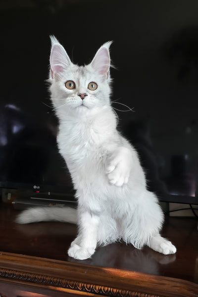 Maine Coon kittens, famous for their regal appearance and friendly temperament, are a true gem in the feline world. These purebred Maine Coon kittens in New Hampshire grow into large, muscular cats with a luxurious coat, highlighted by a distinctive ruff around their neck. Their large, tufted ears and bushy tails make them easily recognizable. Known for their sociable nature, our Maine Coon kittens for sale in New Hampshire are the ideal companions for families and individuals seeking loving, intelligent pets. If you're looking for Maine Coon kittens near me in New Hampshire, explore our blog to learn more about these magnificent creatures and how to find the perfect Maine Coon companion from trusted Maine coon breeders in New Hampshire.